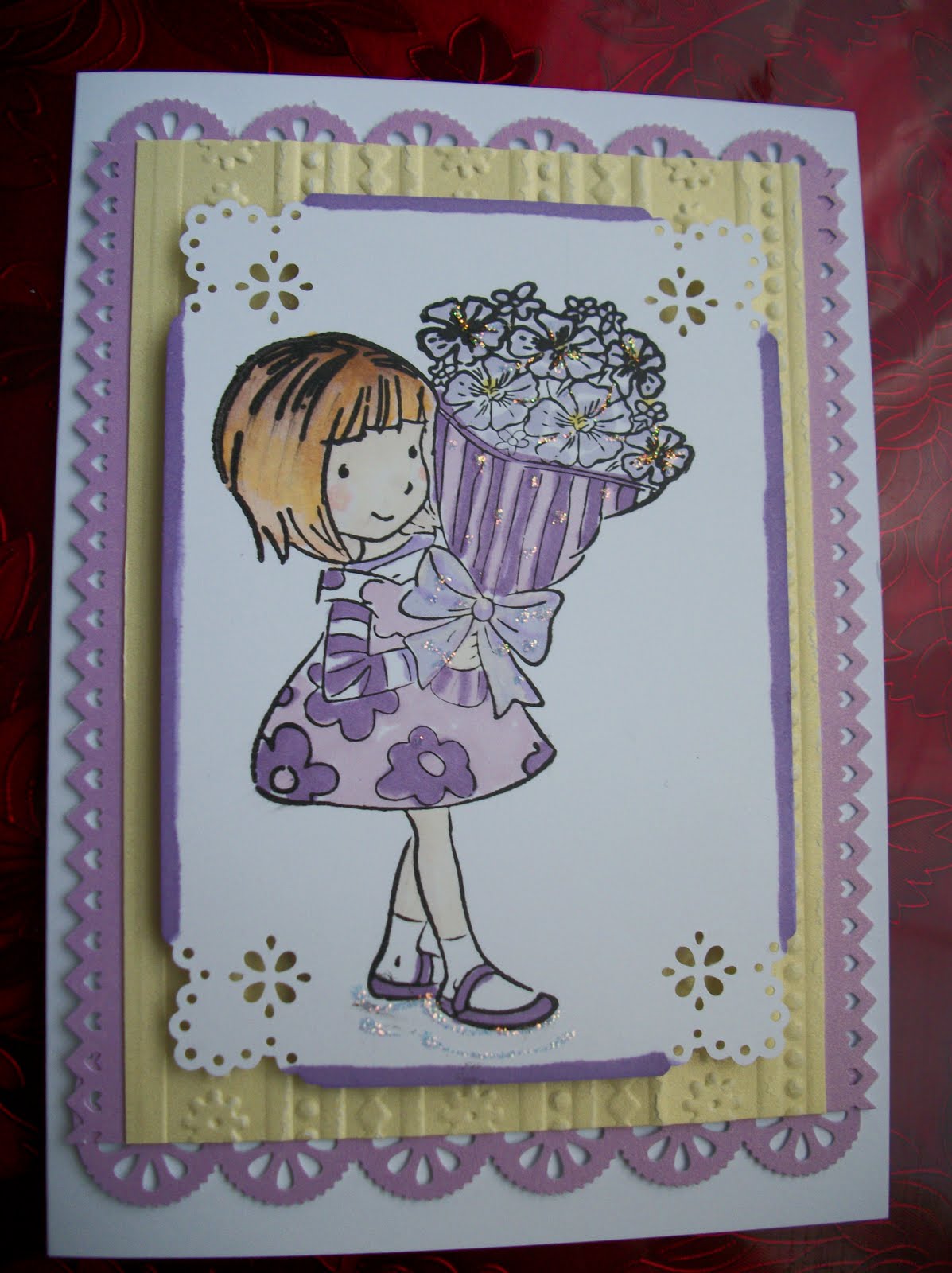 Cards 2 and 3 are using one of my Kanban TSV stamps from QVC a month or so ago. They have been coloured with promarkers and stickles. I have used sissix embossing folders and ek success and martha stewart punches.